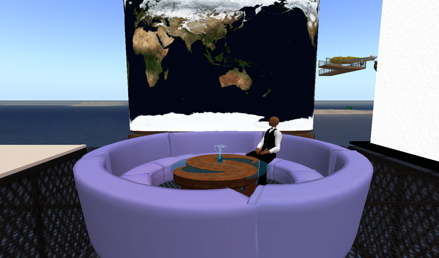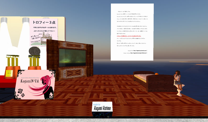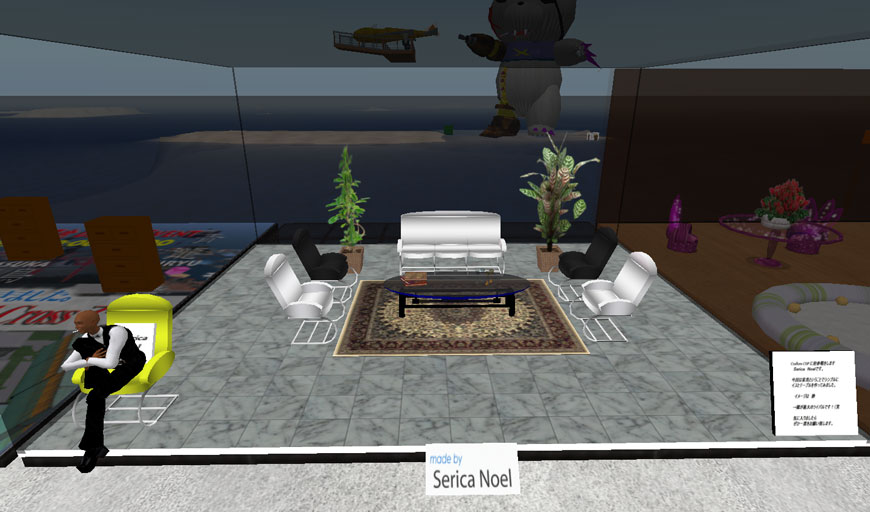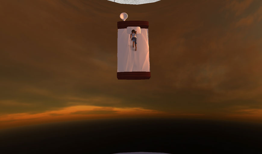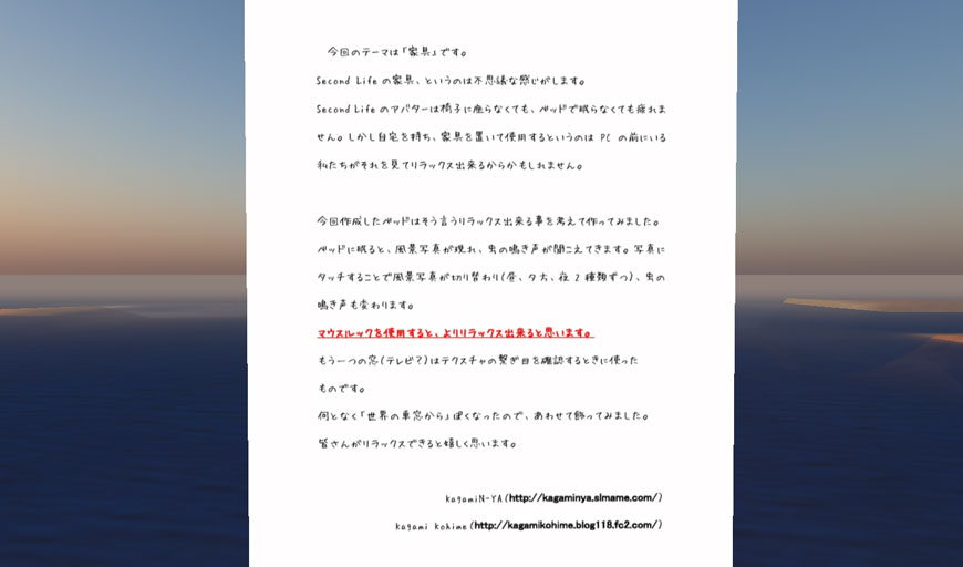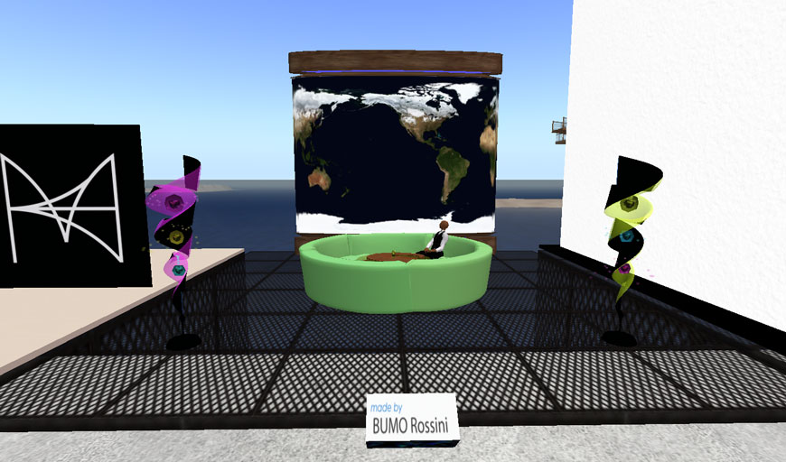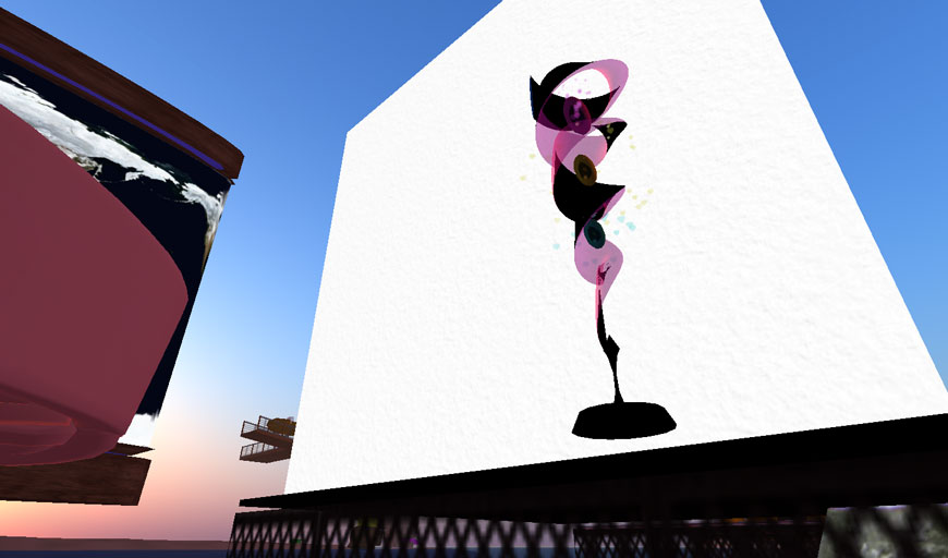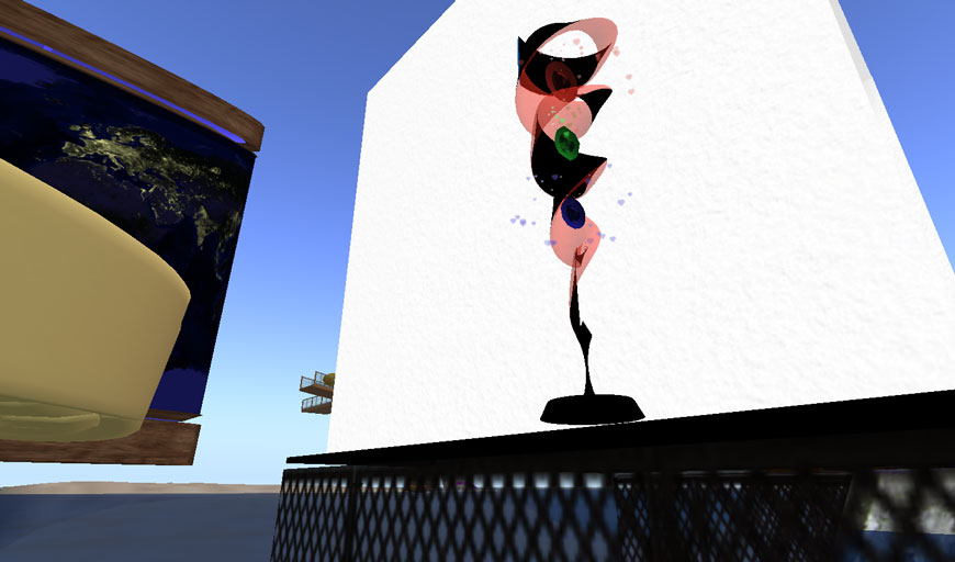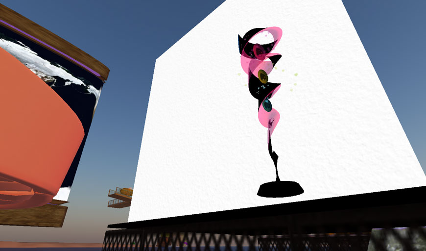 Second Lifeでは、日の出、正午、日没、深夜の太陽モードを切り替えることができるのですが、このオブジェは、時間の経過のみならず、太陽モードの違いによる色合いの変化を味わうことができます。